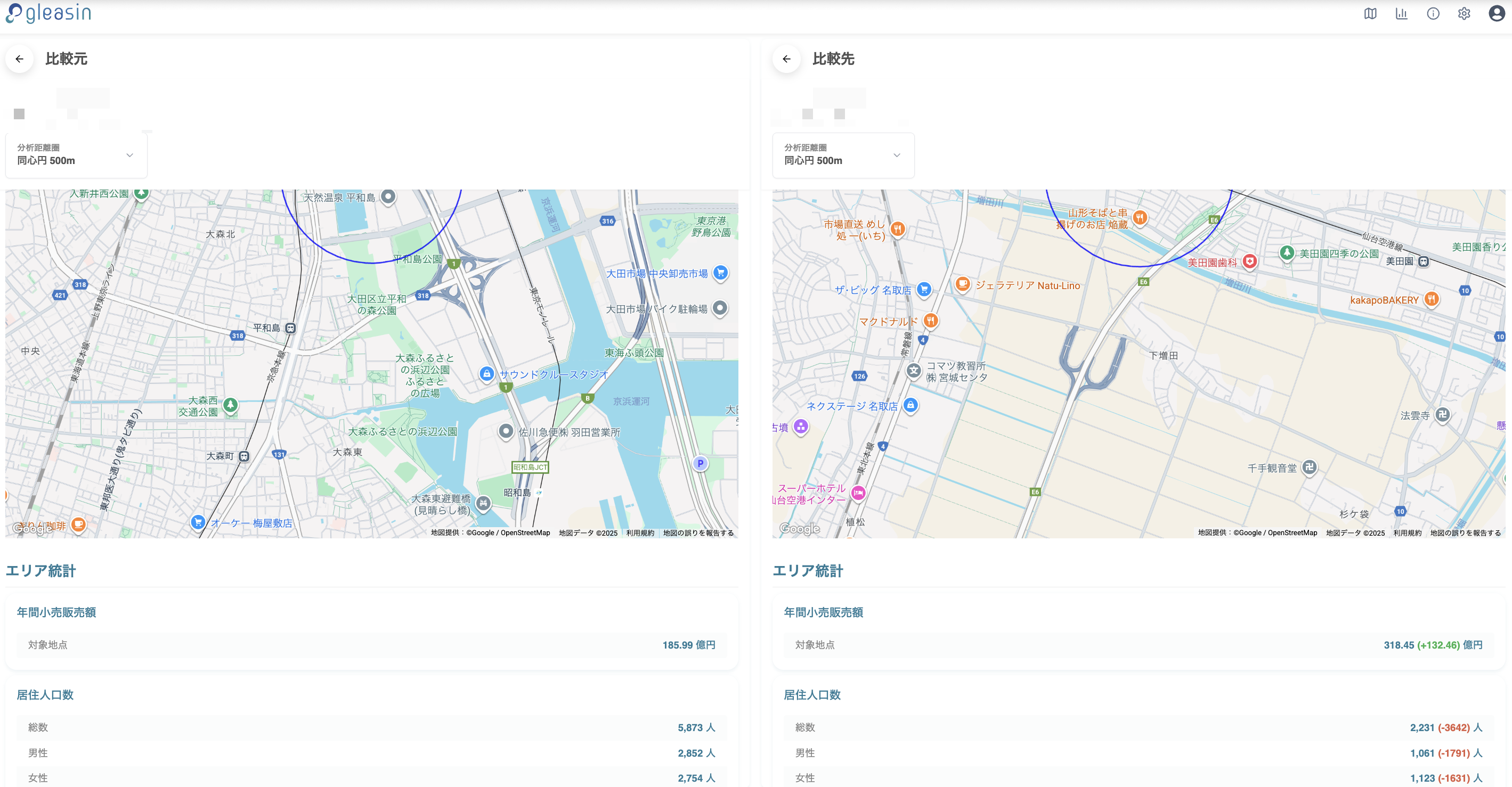 gleasinは、商圏分析・DX推進・GIS・エリアマーケティングを一体化した店舗開発支援ツールです。