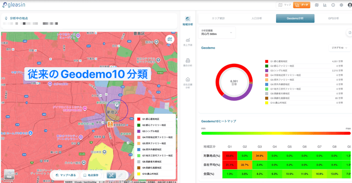 gleasinは、商圏分析・DX推進・GIS・エリアマーケティングを一体化した店舗開発支援ツールです。