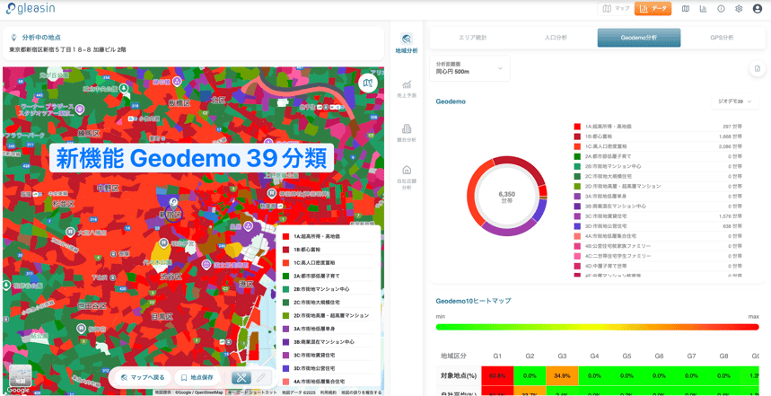 Geodemo 39を使えば「1A:超高所得・高地価」「2A:都市部低層子育て」など、
